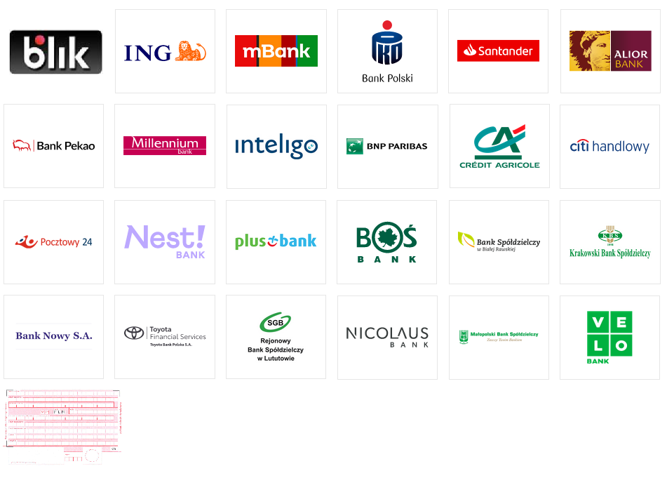 Wszystkie metody płatności realizowane są za pośrednictwem automatycznych płatności Autopay (dawniej Blue Media).